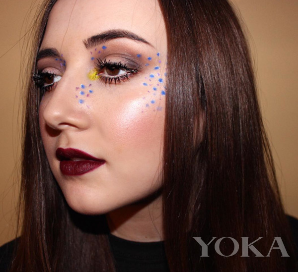 雀斑一直以来都是欧美人可爱的标志,以前也曾经风靡过雀斑妆,不过今年的彩虹雀斑妆又是另外一种不同的风格。