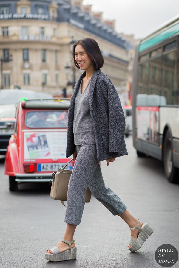 就连稍许沉闷的灰色混搭起来都很抢眼,不同浓度的颜色会让你显得更加高级。