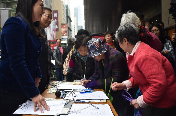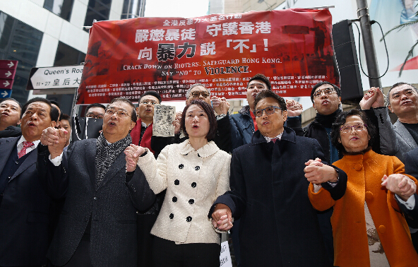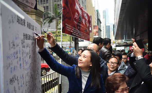 2月16日,香港80多个社团共同发起反暴力大签名行动 吁严惩暴力守护香港。新华社