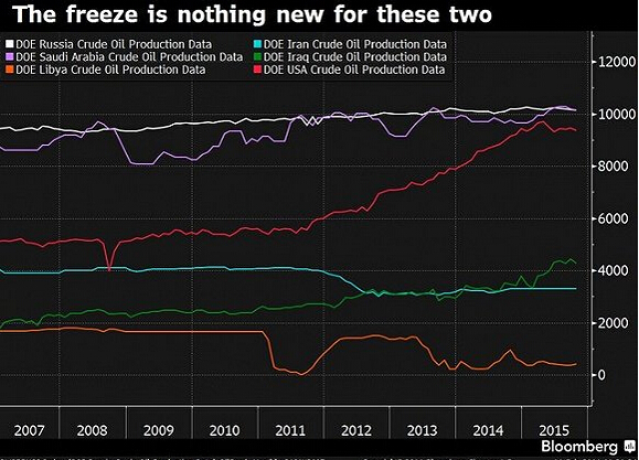 四大產油國同意將產量凍結在1月11日水平,下一次決定原油產量的重大會議可能要等到6月的OPEC部長例會。