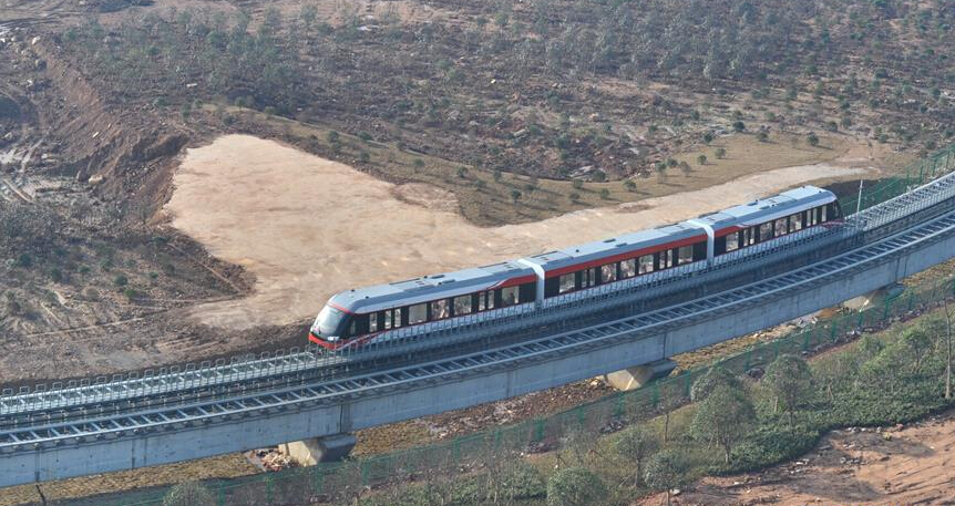 正在上線試運行開展系統調試工作的長沙磁浮快線。