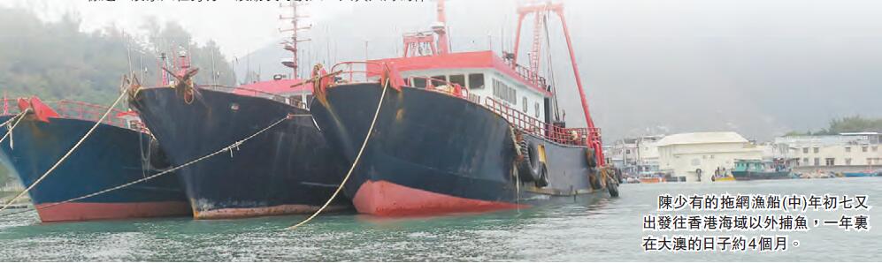 今年農曆新年,陳少有1月5日出發往南海油田海域捕魚,1月21日啟程回家(航程約12小時),到2月14日即年初七又出發往桂山島,匯合8個來自海南島及湛江的工人,展開過年後的捕魚工作。他期望猴年可帶來好運,拖網能「網網萬斤」!