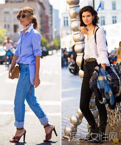 Left:将衬衫束进牛仔裤内,时尚又有提升腰线的效果,再带个手拿包,想怎么fashion就怎么fashion吧!即使穿上西装,也没人敢说你是个古板沉闷不懂打扮的办公室女郎!