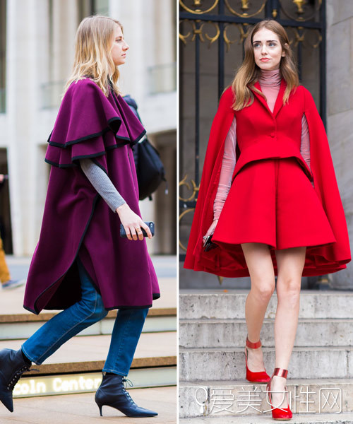 Right:大红的斗篷装宛然是个高贵脱俗的公主,虽然黑色是出了名的显瘦,但亮眼的红色在抢眼这方面也完全不输阵脚啊,露出美腿立刻使人转移了焦点!