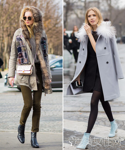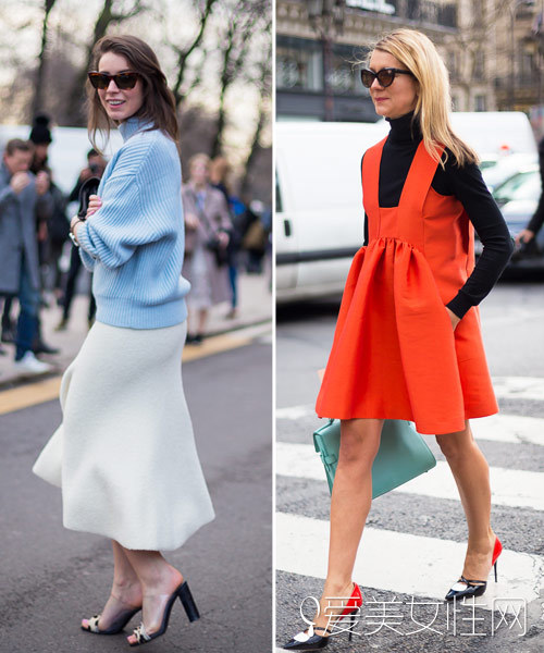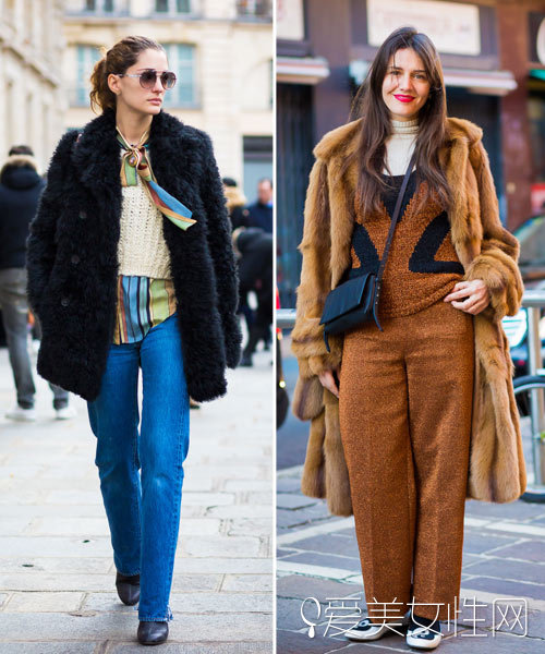 下身选宽松款是每个人都知道哒,那叠穿其实也能瘦腿你知道吗?这个方法实际上就是转移你的视线,让你只看到上身的精彩,而忽略的下身的···“小粗腿”!但叠穿也是需要技巧的,首先叠穿色彩的运用,不要把完全不搭的两种颜色的搭起来,搭得好就说是撞色,搭不好随时变成四不像,初学者要小心哦!其次,就是即使是叠穿也不要叠得太繁琐啦! Left:蝴蝶领的彩色丝绸衬衫加上短款白色毛衣的叠穿非常的小清新,短款的毛衣又更好地拉升了腰线,赞哦! Right:高领毛衣是最简单的叠穿单品,你就把它当一件普通的内搭来穿就好了,只不过高领的部分搭上其他衣服就自然而然地又叠穿的效果咯!金色的套装和棕色的皮草大衣相近色系营造层层递进却不复杂的效果。
