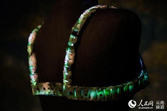 近日,云南德宏一位玉雕师历时三年雕刻而成的翡翠内衣问世,表面还镶嵌了珍珠、红宝石、碧玺等宝石223颗,奢华无比,作品一经问世,受到业内人士的高度关注。