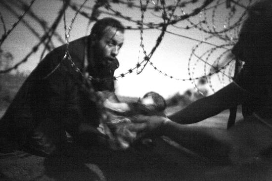 第59届世界新闻摄影比赛(荷赛)评选结果18日揭晓。澳大利亚摄影师瓦伦·理查森的作品《新生活的希望》获年度世界新闻图片大奖、现场新闻单幅一等奖。照片上,一名男子正将一名婴儿送过匈牙利和塞尔维亚边境为阻挡难民潮而立的铁丝网。