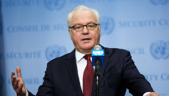 2月5日,在紐約聯合國總部,俄羅斯常駐聯合國代表丘爾金向媒體發表講話。新華社記者李木子攝
