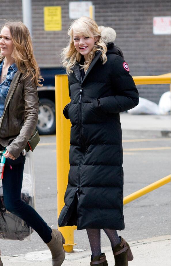 作为传说中“时尚绝缘体的” ,这件绣着“加拿大地图”的羽绒服,已经成了继Moncler(羽绒服界的爱马仕)之后另一大备受追捧的潮牌。周冬雨为了穿上了这件传说中的Canada Goose(加拿大鹅)。 前两天贾静雯微博晒了张跟胡歌的合影,小S表示,合影就合影,那么亲热干嘛!但小编看完后心想,明星也穿羽绒服啊! 【今日穿搭】 Moncler羽绒服+波点丝袜+短靴 艾玛-斯通Canada Goose长款羽绒服暖意洋洋,宽松的Canada Goose羽绒服是品牌的经典单品,长长的外套搭配丝袜也不会冷,让你更显苗条。 【搭配Tips】 Tips1:廓版羽绒服 也许你发现了,今年冬天那种廓版羽绒服随之走俏,秋天流行的廓版呢子大衣如今转型到了羽绒服身上,也有同样显瘦的效果呢。 Tips2:长版羽绒服 除了版型上的区别,长短上也有讲究呢,长款羽绒服能把你小腿都裹起来,妈妈再也不怕你冻腿了,关键的关键、长款今年真的太流行,从明星到街拍达人似乎已经依赖上了这种里面过夏、外面过冬的搭配。