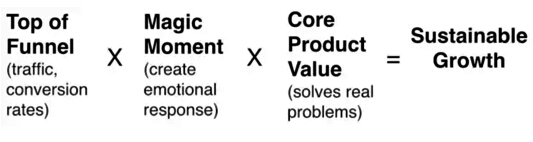 網絡分流的過程就像是一個網絡 “漏斗”,你的產品占據漏斗頂部,就能獲得更大的流量,并且轉換成有實際意義的使用。“神奇瞬間” 是你的產品對用戶產生積極回應的能力。最終,“產品核心價值” 包括市場規模,正確處理問題的能力,以及你的產品能否適應市場。