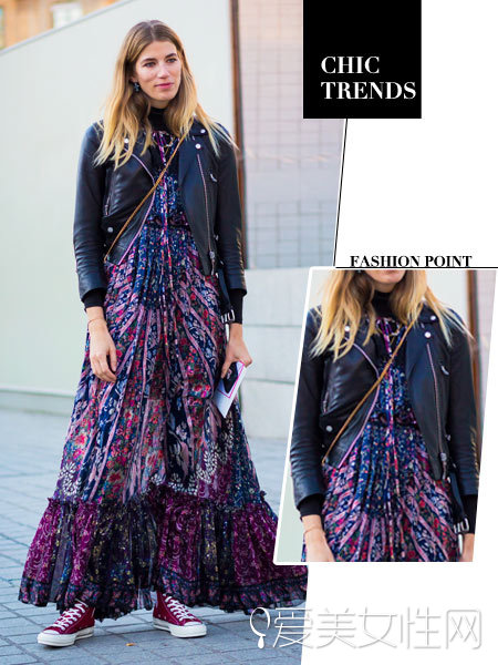 碎花裙相信是很多朋友的春季必选款,还哪有比碎花裙更适合春花烂漫的呢?浅色淡花纹的碎花裙很清新脱俗,而深色的穿起来则非常夺目耀人。不同的印花碎布拼起来的碎花裙就像百家衣,有特色而且充满福气,外搭一件皮衣,甜美风微微收起,更具时尚感,帆布鞋休闲极了!