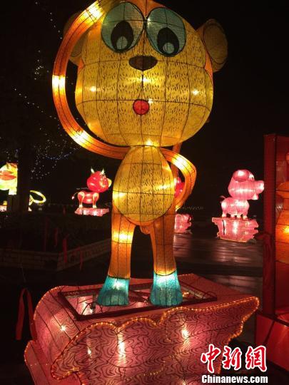 今年元宵节,葛建民做的元宵灯组主灯是一盏猴灯,旁边十二生肖灯围成一个圈。“这组灯象征全国人民大团结,另外还有几个福字灯寓意全国人民有越来越幸福的生活。”葛建民说道。