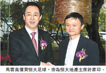 消息傳出之后,業界人士紛紛執筆撰書,認為馬雲12億買足球隊會是賠本生意,連好朋友綠城中國(3900)主席宋衛平也批評馬雲的決定。但是,別人的看法始終是「別人的」,至少馬雲自己覺得,「12億獲得恒大足球一半股權,十分便宜。」