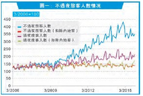 過夜客當然愈多愈好,但近年情况似乎不是這樣。近十年來港旅客人數大增主要是由不過夜客帶動。十年前的2006年,不過夜客占總游客量不夠四成,但十年后的今天已經上升至五成二,可見近年不過夜客反而是推動香港旅游及零售業發展的主要動力。圖一見到不過夜客由2006年至今大升兩倍多,但過夜客卻只升約八成,撇除內地客亦只升近五成(見圖一)。看過這情况后,兩園管理層無論想吸內地客或非內地客的過夜人士,心里有否涼了一截?