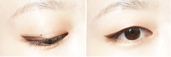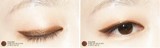 细长的单眼皮是非常典型的韩国脸标志,容易显眼睛小+眼神呆板,因此单眼皮的眼妆一定要规避掉这两点。 仔细看金高银眼妆,每一个镜头都有小小的彩妆技巧,比较常用的是——用自然的眼影代替眼线or用内眼线代替外眼线。 单眼皮不适合浓妆,如果和双眼皮那样用大力度描绘眼妆的话,会给人“用力过猛”的感觉,眼妆反而会显得脏脏的。简单、自然却又有神,如果能完全参透这8个字的话,任何人的单眼皮就能和金高银那么好看。(不参透也没关系,文末有超级详细的化妆步骤) 这些单眼皮女星也很美在“全民想开双眼皮”的风潮之下,总有那么几个坚持着单眼皮而且也有高人气的女星。 前韩国女子组合Wonder Girl成员安昭熙,被称为“馒头妹妹”的她单眼皮相当饱满。也可能因为“坚持不整容”的自信,安昭熙在韩国有相当高的人气(无论男女)。 方敏雅眼睛狭长,笑起来双眼自成一轮弯月,如此天然无公害的“笑眼”,即便是单眼皮,你能说不美吗? 刘雯国内单眼皮美人必定要说的就是刘雯,不笑的时候她能完美演绎什么叫“中性美”,微笑时候变身甜妞,一轮弯弯的笑眼瞬间就击中你。 重头戏终于来了,之前有说过单眼皮不适合太浓重的妆,因此适合单眼皮的眼妆都是走取巧路线。教大家一种眼影代替眼线法不会让单眼皮的你埋没在“双眼皮大军”之下的。 1、用浅棕色眼影打底,用棕色眼线画出上扬的眼线 2、眼睛向下看,在眼尾后方画方框,放大双眼 3、顺着方框的延长线往前填补整条眼线 4、然后用棕色系的眼线笔在之前画的黑色眼线外进行自然晕染 5、在下眼睑的后三分之一处,用棕色眼影勾勒,也是起到放大双眼的作用 在撰写这篇文章的时候,看到有很多人说“金高银和周冬雨长得很像,都是单眼皮”。Nonono,周冬雨不是单眼皮,是内双。明明是双眼皮却老是被认为是单眼皮——内双姑娘我是不是说出了你们的心声?但这种事,怪不得别人眼神不好,全是你化妆技术有问题!我们拿周冬雨来举例,如果你想要保全你的双眼皮,就不要画紧贴睫毛根的眼影、不要画超级黑的眼线、不要戴超级卷翘又浓密的假睫毛(左图),这些元素会“吃掉”你的内双。内双的你画眼妆,应该多使用更能显色的浅色系眼影、眼影不要画太粗太浓、睫毛稍稍修饰即可(右)。