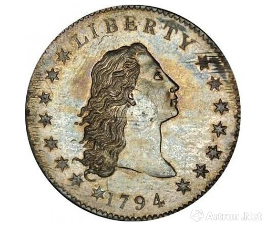 这枚名为“飘逸长发”(Flowing Hair)的1794年发行的一美元银币,拍卖价超过1000万美元。