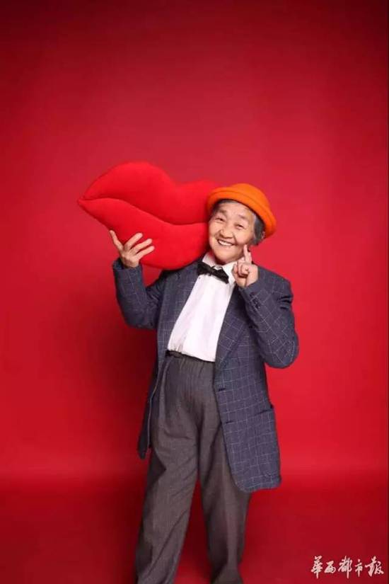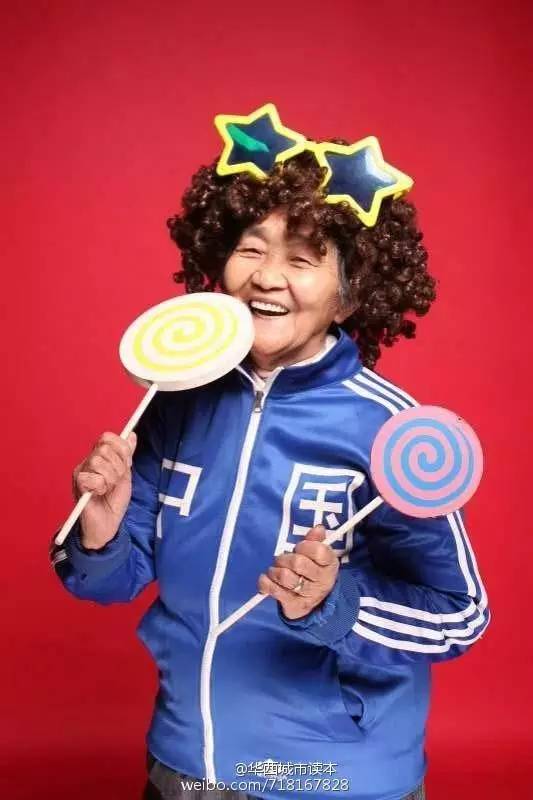 身穿印有“中国”字样的大红色运动服,头戴烫卷蓬松的爆炸式假发,面露笑意,嘟嘴卖萌尽显俏皮……一组八旬老人的俏皮照片,让看过的人们都直呼靓丽又有趣。照片中,时尚、可爱的女主角,俨然就像一位重返青春的美少女,满是童真和俏皮。