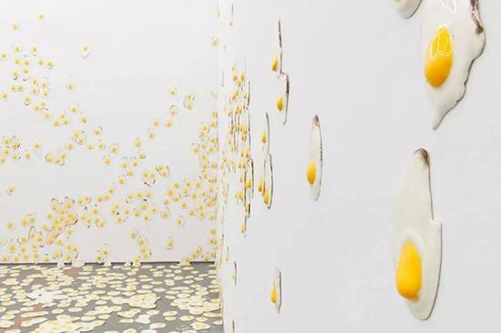 艺术家Christopher Chiappa显然对鸡蛋有自己的理解。这家伙估计很爱吃煎鸡蛋。于是他用7000个煎鸡蛋高出了一个创意的作品出来。通过精心的铸造和浇注与打磨上漆,得到了高度逼真的煎鸡蛋模型。可不是一两个。而是7000个。于是这些家伙将这些煎鸡蛋都呼到了墙上。于是一个伟大的作品就诞生了。大家一起来感受一下。