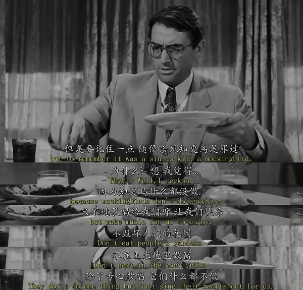 同名电影《杀死一只知更鸟》剧照。格利高里·派克扮演的阿提克斯·芬奇是一位律师。