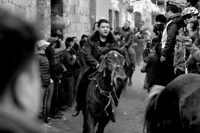 2月23日,山西省平定县下董寨村村民骑着马从村道里驰骋而过。当日是正月十六,在山西省平定县下董寨村,当地传承久远的民俗活动“跑马排”正式开始,村民们骑上大马,在古村道里往返驰骋。