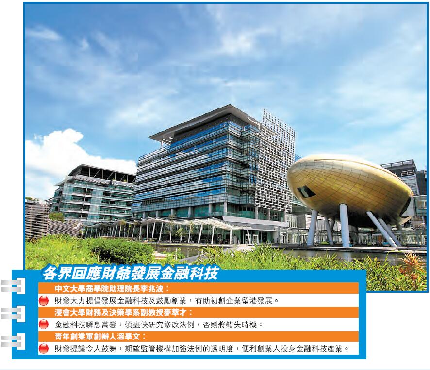 青年创业军创办人温学文对预算案建议感到鼓舞,认为扩阔了香港创业者的生存空间,又认为政府提出发展金融科技之余,应加强年轻人对金融知识的教育,从而促使资讯科技及金融知识互相结合,促进行业发展。浸会大学财务及决策学系副教授麦萃才认为,金融科技瞬息万变,须尽快研究修改法例,否则或会错失时机。
