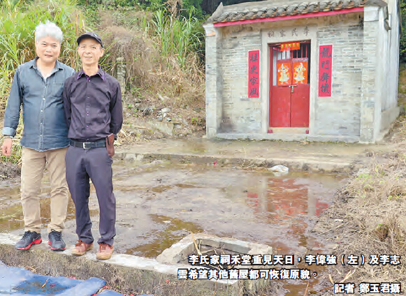 數月過去,李氏祠堂可說變得面目一新,新者是祠堂前有一片空地,這是「禾堂」,顧名思義,當年是曬穀的地方。李志雲說,老圍間間客家屋前都有禾堂,「好多活動都在這裏舉行,有個同村兄弟最威,結婚時在一排屋的禾堂擺了7天酒」,說起來幾十年前的事如在昨天。李偉強最緬懷少時往事,「煲落粥,我去田裏捉田雞,煲田雞粥,再摘通菜煮,同村裏兄弟傾天光,好開心」!