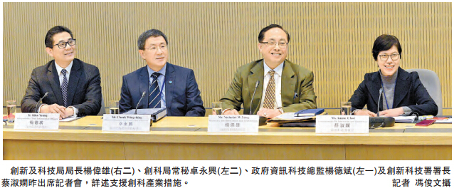 杨伟雄昨日率领多位官员举行记者会,详述预算案有关支援创新科技产业措施。他指出,预算案提出的措施,包括5亿元推行「科技券先导计划」、提高「投资研发现金回赠计划」的回赠金额、提升「实习研究员计划」津贴额及斥资扩建科技园等,都是可望於短期落实,加速本地创科产业发展措施,相信政府支持加上「官产学研」力量的结合,会开创香港科研及创新创业的新时代。