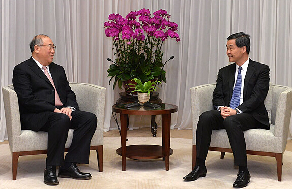 【香港商报网讯】行政长官梁振英(CY)(右)昨早在办公室与访港的中国气候变化事务特别代表解振华(左)会面,就共同关心的课题交换意见。