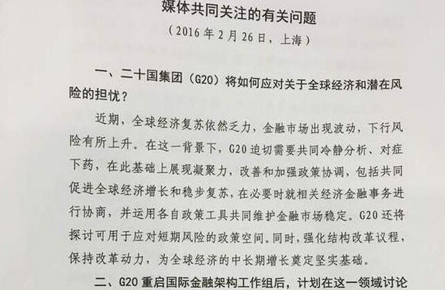 大家知道今天晚上G20財長和央行行長會將在上海召開。