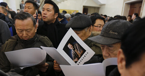 前来送行的人们认真阅读楚青同志生平。中国青年网记者张炎良摄