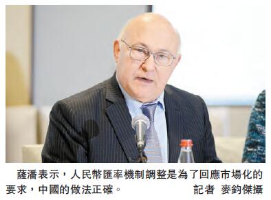 另一方面,美國對人民幣匯率指手畫腳,西方一些主流喉舌媒體亦從中大做文章。但薩潘強調,法國與中國一直在匯率問題上有充分溝通,法國認為中國對人民幣匯率計算機制進行的改革,是回應市場化的訴求,中國的做法十分正確。他又表示,法國願意與中國合作推廣人民幣,已決定與主要商業銀行合作推廣人民幣,期望法國成為歐洲最大的人民幣中心。有關做法能讓不同貨幣健康發展,對法國以及全球都有利。