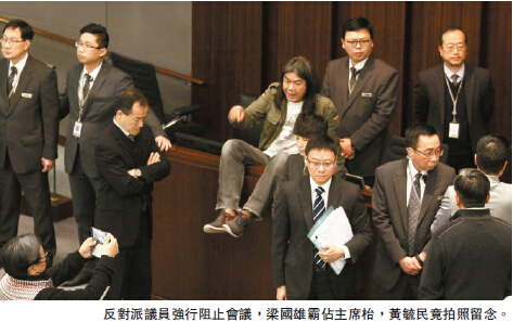 立法會財委會加開4節會議,審議196億元高鐵工程追加撥款申請,陳鑑林中午「剪布」,宣布第三節會議進行最後一輪發問後,將表決臨時動議。多名反對派議員包括:陳偉業、梁國雄、毛孟靜、李卓人等包圍主席台阻止會議進行,陳志全甚至霸佔主席位,雙方擾攘近一小時,會議由會議室一改至召開大會用的會議廳舉行,陳鑑林裁定8名反對派議員行為極度不檢,不准8人參與該節會議。