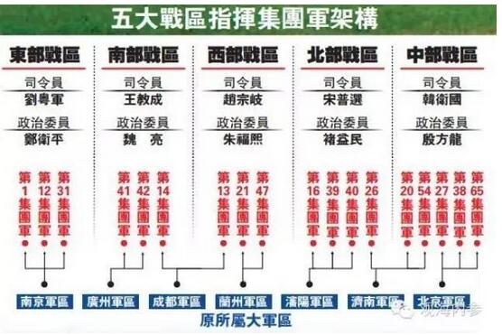 据大公网报道,拱卫京师、策应四方的中部战区,接下了原北京军区第27、第38、第65集团军以及原济南军区第20、第54集团军。综合来看,五大战区所指挥的集团军在3至5个,而以中部战区为最多,为5个。