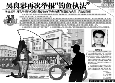 《北京青年報》刊發《永新派出所涉嫌釣魚執法被調查》、《永新派出所“釣魚執法產業鏈”調查》、《吳良彩再次舉報“釣魚執法”》系列調查,揭秘當地派出所公權尋租黑幕。