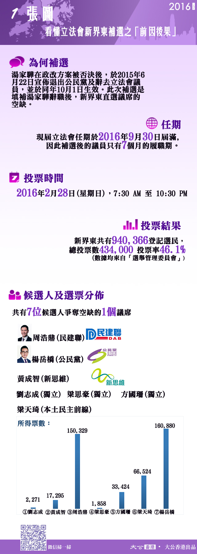 大公網2月29日訊 經過15個小時的投票,新界東立法會補選於28日晚10點30分結束。根據選舉事務處的數據,是次補選共有43萬4000名選民投票,占所有94萬多登記選民的46.1%,仍低於2012年53.86%的投票率。選舉最終結果大約在29日凌晨5點出爐,民建聯的周浩鼎以10551票劣勢,惜敗於公民黨的楊岳橋,代表極端激進勢力的「本民前」梁天琦則拿到了66524張選票,在7名候選人中排名第3。