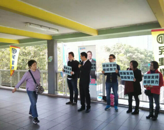 周浩鼎路邊謝票,輸了也要向市民謝票。劉深 攝