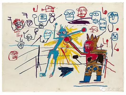 Robert Crumb, Mr. Natural (1976). “他最早购买的是巴斯奎特的画,”1988年去世的纽约黑人涂鸦艺术家的作品是小李在艺术收藏领域的敲门砖。 不得不说,从小和插画艺术家接触对小李子有着潜移默化的影响,巴斯奎特是以幽默的手法,和看上去像儿童画一般稚拙的人物形象在绘画着叛逆与众不同的世界,他是反传统的,充满着想象力与新潮思想。 Jean-Michel Basquiat, Untitled (Boxing Ring) (1981). 最开始小李子对于收藏谁的作品、自己真正喜欢谁都一无所知,收藏上只知道盲目的跟随,一有人拿出一样东西来,他就说:“天哪!我想要!我想要! 自知这样的收藏方式是无法得到好作品的,他开始频繁地参观画展,学习艺术知识,不断地在艺术领域死磕,誓要成为半个专家。 小李子在巴塞尔艺术节 小李子光是艺术经纪人就有十多个,足以见得他的专业化,有高人指点,艺术眼光当然会越来越好。 由美国加利福尼亚大学艺术史教授罗伯特·威廉姆斯(Robert Williams)引进门,他介绍了许多洛杉矶艺术家给小李子,比如埃德·鲁沙(EdRuscha)、托德·肖尔(Todd Schorr)和马克·赖登(Mark Ryden),这些作品成为小李子的收藏起点。 埃德·鲁沙《两本书》 当跨进了艺术收藏的门槛,就是开始不断试手的时候了,将掌握的知识运用到实践之中。这些年来,小李子逐渐收藏了毕加索、安德烈亚斯·古尔斯基、艾德·拉斯查、伊丽莎白·佩顿、莎拉·卢卡斯等艺术家的作品。 Pablo Picasso, Fillette (1939-40). Elizabeth Peyton, Leonardo (2013). 小李子总会在艺术品面前驻足,细细的观赏着作品,或许是一块色彩,或许是一个有趣的形象,如果这幅画有打动自己的地方,他会果断的买回去。 小李子在巴塞尔艺术节 他愿意陪着他选择的画家们成长,见证一个默默无闻的艺术家忽然被大量的竞价包围了,证实自己选择的正确,这,也是他收藏的乐趣之一。 由于独到的眼光,他骄傲的说:”我从来没有在什么东西上出过高价,看着世界如何选出下一个“天定之人”是很有趣的事。” 可以看出,眼光独到的人投资艺术品总是能收获颇丰,不过小李子收藏艺术品也并非是为了赚钱,这些艺术品给小李子的环保事业也带来了很高的价值。 我们或许不知道,爱艺术的他也有热爱环保的一面,并且几十年如一日的钟情环保事业,反正,只要是喜欢的事情他就会死磕到底。 关注他的粉丝可以在他的官方主页上看到,有80%的内容是对环境的关注,做采访时他也能一口气说出20个濒危物种,他甚至曾经想过离开影坛转做环保。 因为想为环保事业做一番贡献,他邀请佳士得拍卖共同筹办了一场名为“第11小时”的个人拍卖会,用他的私人珍藏募集了3880万美元善款。40多岁的他,有了一个新的身份:收藏家,跻身全球顶级藏家200强。 Leonardo DiCarprio在拍卖会现场 他在拍卖会上说:“我们必须开始像珍视精美艺术品一样,珍视我们的地球,为我们的子女,我们的后代,保护这笔财富” 用艺术的强大的感化力呼吁人们对关注环保,这样的慈善方式显然很有意义也能带来很强烈的效果。 当晚,大咖们纷纷捧场,知名艺术商人拉里·高古轩买走了现场最贵的作品——花620万美元拍下了抽象艺术家马克·格罗蒂扬所绘的一幅复杂彩色图案画。 马克·格罗特雅恩(Mark Grotjahn)创作于2012年的彩虹色调抽象画《无题》,起拍价为150万美元 小李的密友、“蜘蛛侠”托贝·马奎尔,在拍卖会上花26万美元买走了谢尔盖·詹森的《无题》
