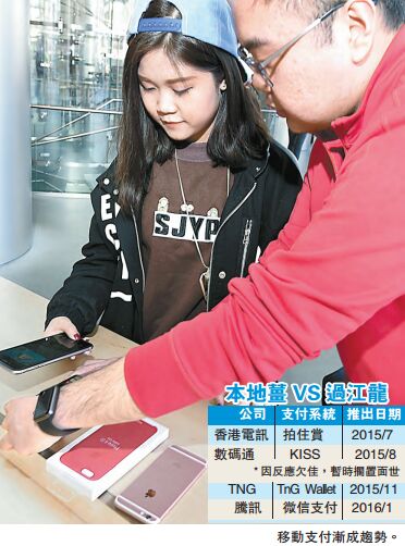至於蘋果公司,行政總裁庫克去年曾說過,流動支付系統Apple Pay夥拍美國運通(American Express),今年於香港、新加坡及西班牙推出。Apple Pay在香港將推出的消息旋即令人引頸以待,但至今只聞樓梯響。相反,Apple Pay上月卻選擇先在內地搶灘插旗,與中國銀聯合作,成為該系統在亞洲區第一個落腳地。