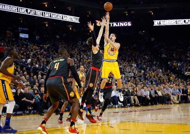 腾讯体育3月2日讯 勇士坐镇主场迎战老鹰,最终他们加时以109-105击败对手,其中克莱-汤普森此役27投8中,三分球16投6中拿到26分6个篮板5次助攻,他在最后时刻凭借一记跳投终结了比赛。