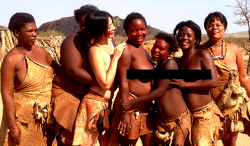 这是摄影师Nagi Yoshida和纳米比亚Himba族女子在一起的照片,别说你找不到她在哪:这些年下来,Nagi姑娘走遍非洲,了解到了15个原始部落,曾经和其中12个部落接触过,但即使赤身裸体,她也只能得到6个原始部落的信任。