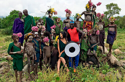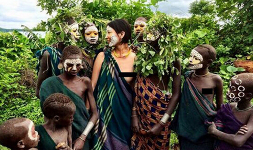 摄影师Nagi Yoshida成名后,还曾经有电视节目公司全程拍摄她和部族的接触过程:和Nagi接触最多的原始部族是埃塞俄比亚的Sri族,虽然没能参加部族的祭祀活动让Nagi很遗憾,但是光看姑娘小伙用各种植物打扮自己,就够奇幻了。