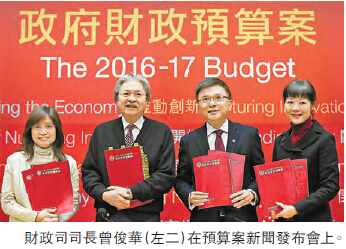 2月24日,財政司司長曾俊華發表《2016/2017年度財政預算案》,預測2016/17年香港的本地生產總值(GDP)實質增長約1%至2%,甚至可能低於1%,為過去10年新低。鑒於外部經濟形勢惡化,外貿和旅游業不景氣,財政預算案制訂總額達388億港元的多項惠及民生的措施(俗稱「派糖」)以刺激本地消費,期望為本地經濟帶來1.1%的提振作用。