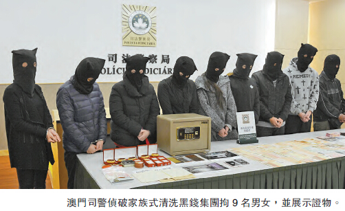 司警根據資料進一步跟進,發現該對夫婦幕后原來涉及一個「家族式清洗黑錢集團」,利用澳門銀行帳戶轉移及隱藏犯罪所得,經調查及分析涉案人數十個帳戶資金流向后鎖定目標。前日早上7時開始,司警在多個地點先后拘捕涉案9名男女,在6個單位檢獲大批證物,扣查了10個由主腦夫婦及該9人開設帳戶,起出約1300萬元存款,同時查獲利用不法收益購買的本地物業、車位和名車,總值約1200多萬元。