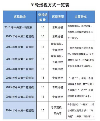 15個巡視組對應36家巡視對象,這使得此輪巡視再次創新了巡視方式。