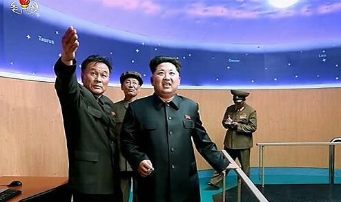 2015年5月金正恩視察衛星綜合指揮所柳哲宇陪同