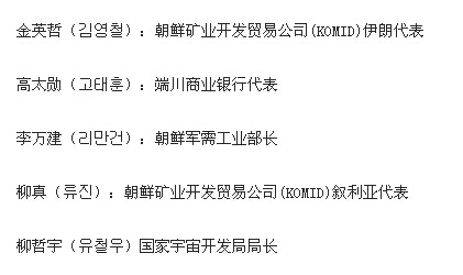 綜合外媒報道,這16人中,有朝鮮遠程導彈項目的高級官員,有朝鮮間諜機構“偵查總局”的高級官員,朝鮮端川銀行駐敘利亞、越南官員,朝鮮礦業發展貿易公司駐伊朗、敘利亞代表、軍需工業部部長等等,涵蓋面十分廣泛。具體名單如下(人名翻譯有出入,以括號內韓文為準):