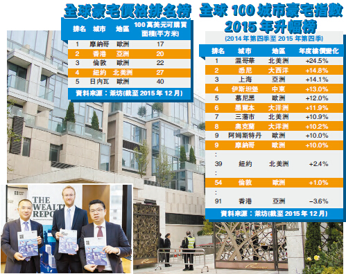 【香港商報網讯】萊坊最新一份《財富報告》,除統計全球富豪數目,亦披露了全球豪宅樓價變化。根報報告資料,原來香港超級豪宅價格不如外界估計般「硬净」,截至2015年12月,香港豪宅樓價指數按年跌3.6%,於全球100個城市中,表現僅排91位。