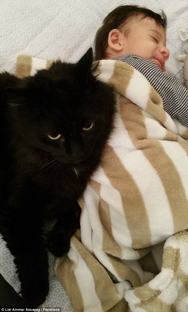 【环球网综合报道】据英国《每日邮报》3月3日报道,加拿大一只名叫潘达(Panda)的猫咪在女主人Liel Ainmar Assayag产下小宝宝后,形影不离地守护小主人,非常有爱。