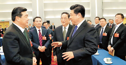 習近平提到「一帶一路」建設、京津冀協同發展、長江經濟帶發展等,他強調,這些方面都可以做大文章,在新常態下當有新作為新發展。在這場聯組會上,習近平說,實行公有制為主體、多種所有制經濟共同發展的基本經濟制度,是中國共產黨確立的一項大政方針,必須毫不動搖鞏固和發展公有制經濟,毫不動搖鼓勵、支援、引導非公有制經濟發展。習近平表示,非公有制經濟在中國經濟社會發展中的地位和作用沒有變,我們鼓勵、支援、引導非公有制經濟發展的方針政策沒有變,我們致力於為非公有制經濟發展營造良好環境和提供更多機會的方針政策沒有變。