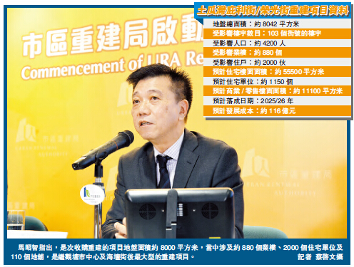 市建局規劃及設計總監馬昭智指出,是次收購重建的項目地盤面積約8000平方米,當中涉及約880個業權,2000個住宅單位及110個地舖,是繼觀塘市中心及海壇街后最大型的重建項目。他預期,項目落成后可提供約5.5萬平方尺住宅樓面面積,涉及約1150伙,當中以400至500平方尺的中小型單位為主,另提供1.11萬平方米商業或零售樓面,預計落成日期為2025至2026年,發展成本約116億元。